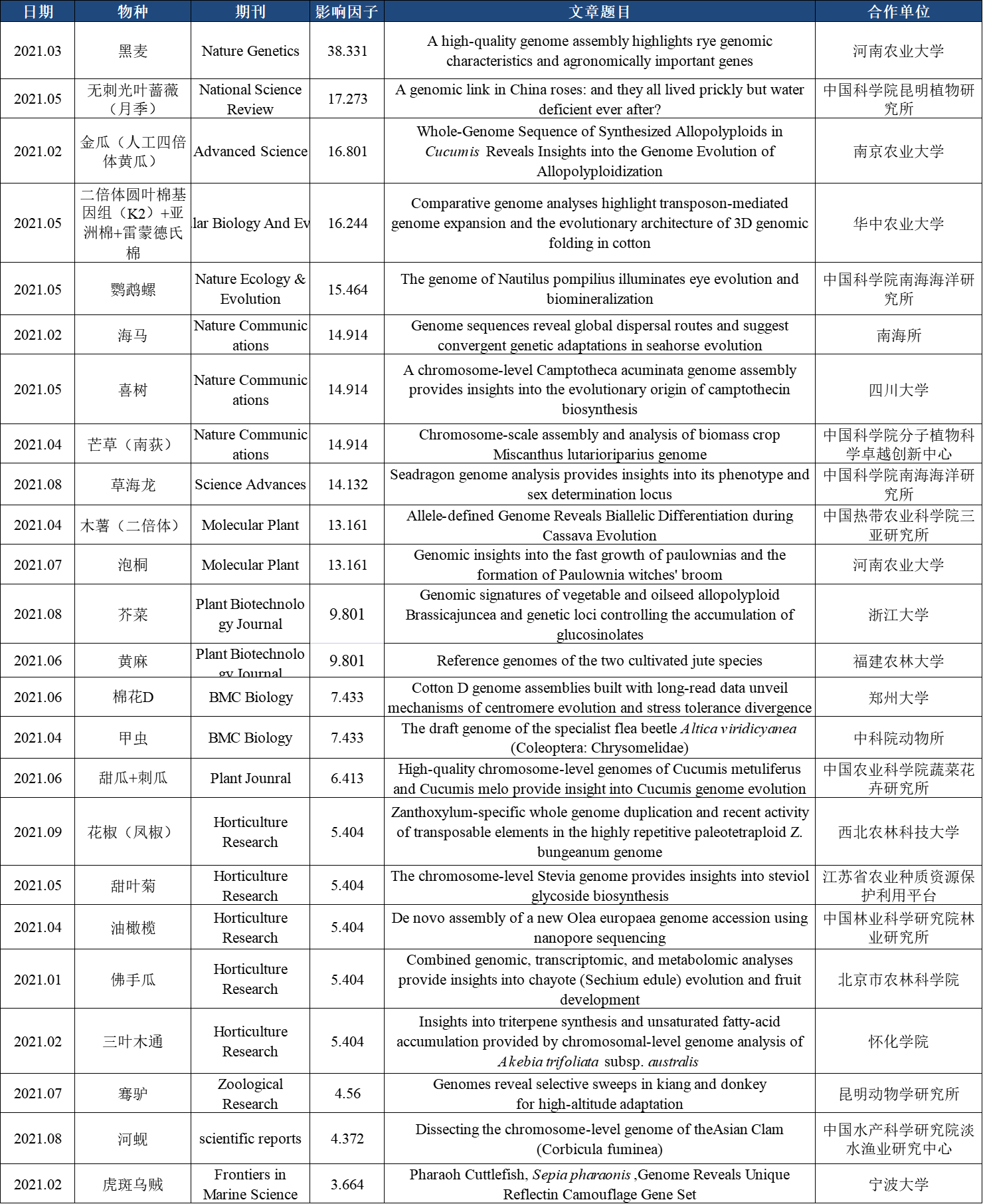 百邁客2021年基因組成功案例展示