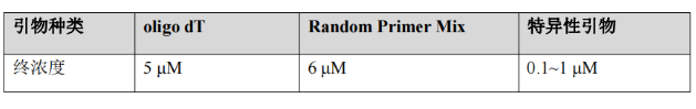 逆轉(zhuǎn)錄引物一般包含三種:oligo dT,Random Primer Mix和特異性引物。客戶可以根據(jù)個(gè)人需求進(jìn)行選擇。