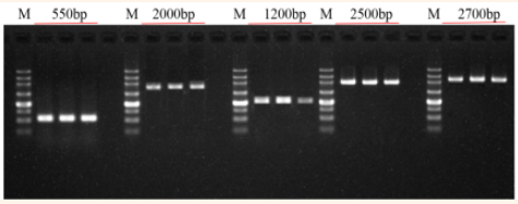 實(shí)驗(yàn)數(shù)據(jù):以cDNA為模板,進(jìn)行PCR擴(kuò)增的凝膠電泳圖