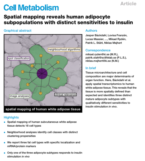 中文題目:空間圖譜揭示人類(lèi)脂肪細(xì)胞亞群對(duì)胰島素有不同的敏感性 期刊名稱(chēng):Cell Metabolism