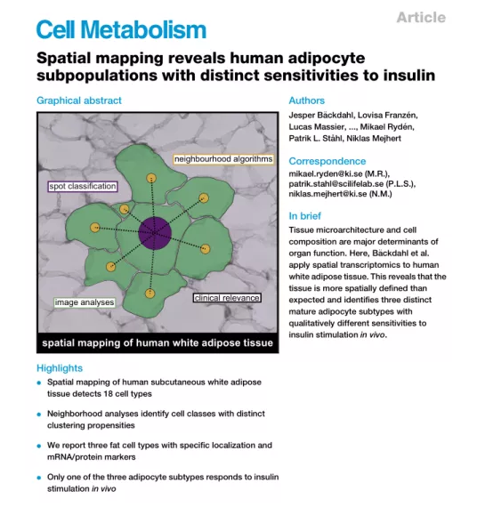 英文題目:Spatial mapping reveals human adipocyte subpopulations with distinct sensitivities to insulin