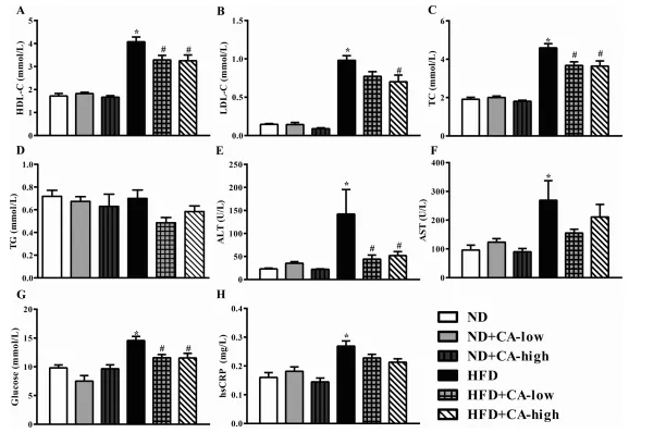 2.CA的補充影響hfd喂養(yǎng)小鼠的生化標(biāo)記物