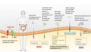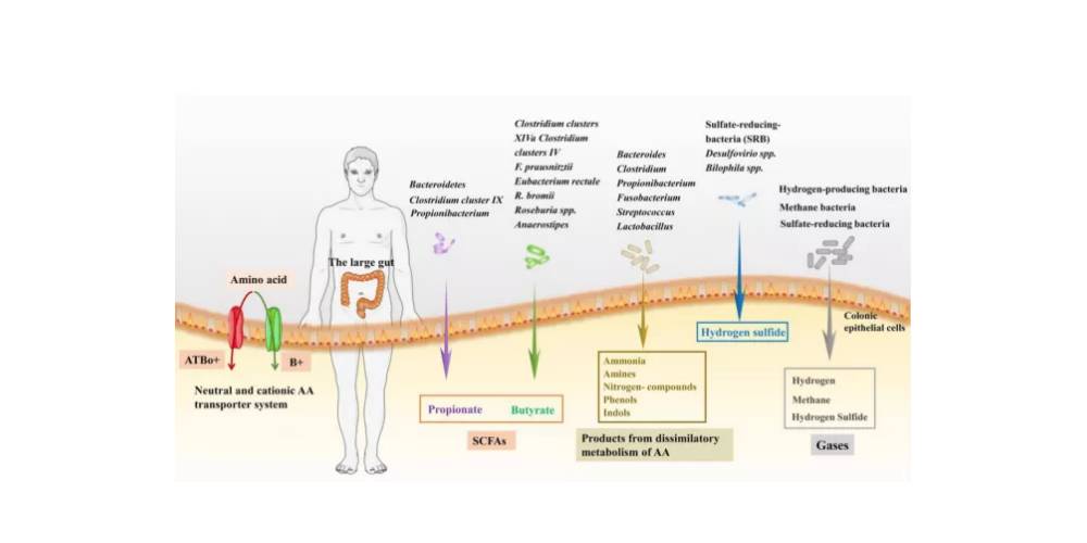 氨基酸(Amino Acids,AAs)是人體必需的物質(zhì),它不僅是蛋白質(zhì)合成的原材料,還可以參與微生物代謝。人體獲取氨基酸不僅可以通過腸道吸收,還可以由微生物代謝產(chǎn)生。不僅如此,氨基酸組成和豐度的變化可影響代謝細菌群落,并通過TLR受體、NLR受體等調(diào)節(jié)巨噬細胞和樹突狀細胞,還可通過AhR受體、5-HT調(diào)節(jié)腸道微生物免疫軸,以及其他信號通路,所有這些通路在直接或間接調(diào)節(jié)腸粘膜免疫和微生物群方面起著關鍵作用,有助于腸道內(nèi)環(huán)境平衡。[1]