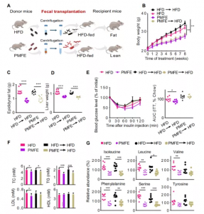 圖4.柑橘PMFE糞便移植對HFD小鼠具有代謝保護作用