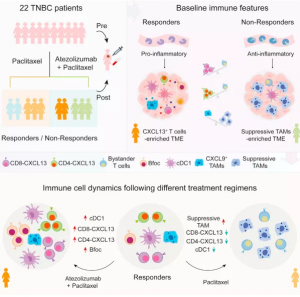 ● 突出了CXCL13+T細胞在有效應對抗PD-L1療法方面的重要性,并表明通過紫杉醇療法減少這些細胞可能會損害伴隨阿特珠單抗 (Atezolizumab)進行TNBC治療的臨床結(jié)果。
