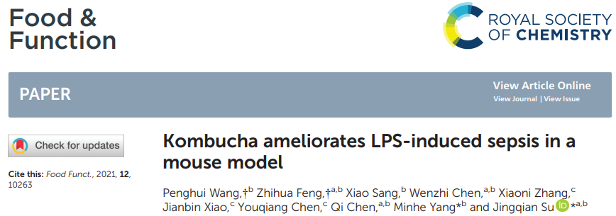 2.Wang P, Feng Z, Sang X, et al. Kombucha ameliorates LPS-induced sepsis in a mouse model[J]. Food & Function, 2021, 12(20): 10263-10280.