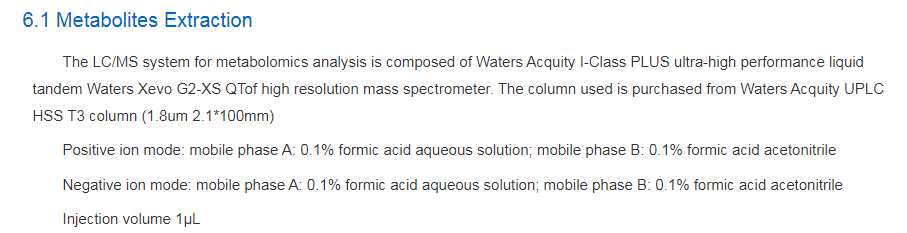 LC-MS是指液相色譜-質(zhì)譜聯(lián)用技術(shù),該技術(shù)對待測組分的揮發(fā)性和熱穩(wěn)定性沒有要求,不需要繁瑣的衍生化步驟,樣品前處理簡單,檢測溫度低,分離物質(zhì)快速、高效,是目前代謝組學(xué)研究中常用的分析技術(shù)。