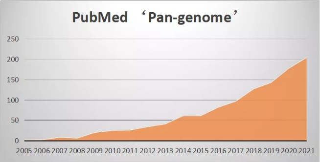 泛基因組近年發(fā)展趨勢(基于NCBI PubMed搜索pan-genome)