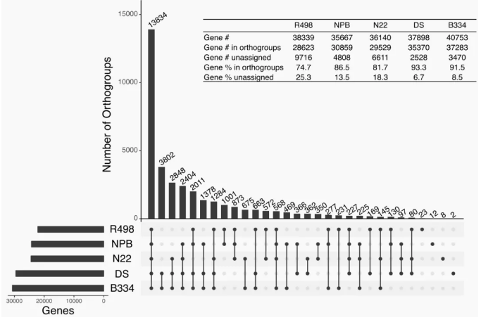 核心基因(core gene):在所有動植物品系或者菌株中都存在的基因;非核心基因(dispensable gene):在1個以及1個以上的動植物品系或者菌株中存在的基因。特有基因(Private):僅在一個品系中存在的基因。