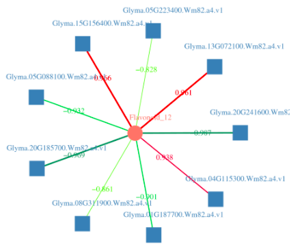 按通路選取經(jīng)過相關性篩選的差異基因和差異代謝物繪制網(wǎng)絡圖,通過網(wǎng)絡圖來可直觀的表示代謝物和基因之間的關系。