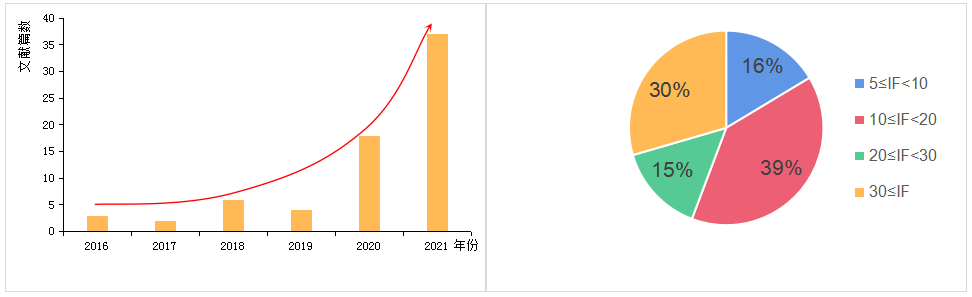 2016年-2021年空間轉(zhuǎn)錄組文章發(fā)表趨勢(shì)和影響因子分布