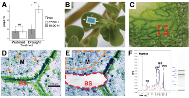 對馬齒莧葉片在水分充足和干旱條件下的葉肉和束鞘細胞群體進行了兩種不同的空間基因表達分析,此外,測試了在多種情況下,C4和CAM在葉肉和束鞘細胞間整合的最有效生化模型,作為一個新的理論闡釋馬齒莧植物光合代謝機制。