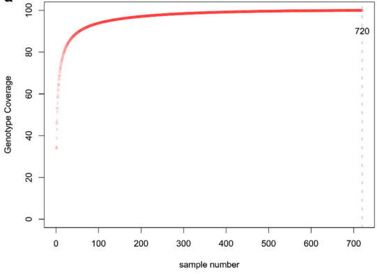 核心種質(zhì)可以最大限度地去除原始種質(zhì)資源中的重復(fù),以最少的種質(zhì)材料代表原始種質(zhì)資源的全部或大多數(shù)遺傳多樣性和地理來(lái)源,為當(dāng)前越來(lái)越多的種質(zhì)資源收集、評(píng)價(jià)和利用帶來(lái)了便利,特別是隨著基因組學(xué)的發(fā)展,測(cè)序成本的極速下降,使得大規(guī)模群體測(cè)序得以實(shí)現(xiàn)。利用高分辨率的分子標(biāo)記,提升遺傳材料間遺傳相似度和雜合度的鑒別能力,從而選擇能夠代表整個(gè)種質(zhì)資源基因多樣性的大小合理的核心種質(zhì)材料,更加有助于種質(zhì)資源的保存、管理、使用。使得我們可以有重點(diǎn)地進(jìn)行優(yōu)異種質(zhì)的研究,結(jié)合GWAS分析、遺傳進(jìn)化分析、QTL定位、特有標(biāo)記開(kāi)發(fā)等方法進(jìn)一步進(jìn)行基因的挖掘與克隆,提高種質(zhì)資源的利用效率。