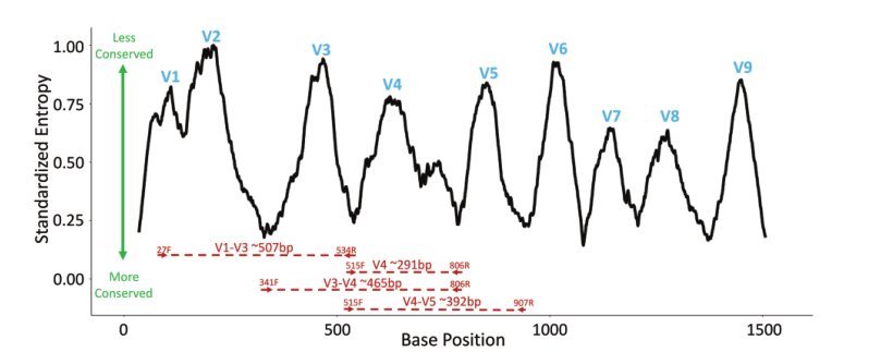 圖1.16S rRNA基因保守區(qū)和可變區(qū)的示例圖。