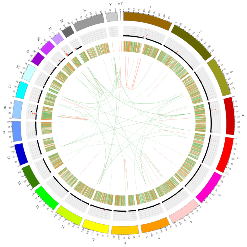 (1)通過三代重測(cè)序?qū)θ嘶蚪M進(jìn)行SV、CNV等變異檢測(cè),系統(tǒng)分析人全基因組的結(jié)構(gòu)變異。