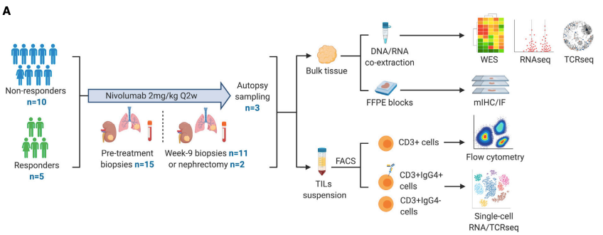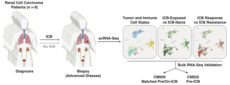 實(shí)驗(yàn)材料:8例晚期腎細(xì)胞癌患者,5例ICB治療,3例未治療。
