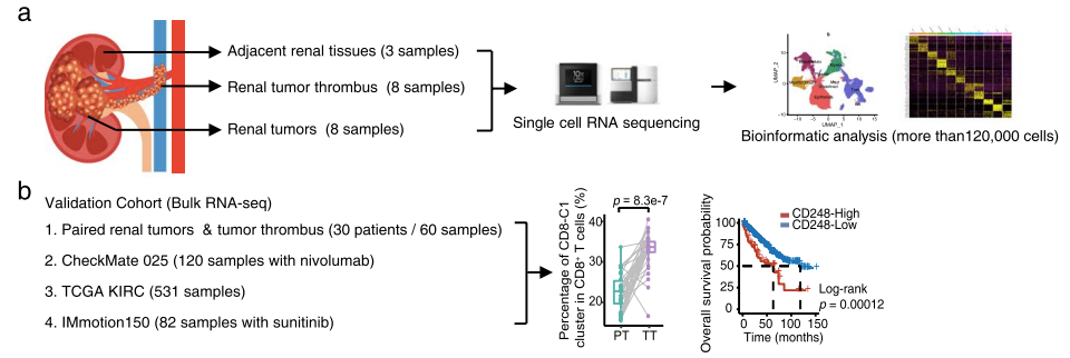 中文題目:?jiǎn)渭?xì)胞轉(zhuǎn)錄組測(cè)序揭示腎癌和癌栓腫瘤微環(huán)境差異