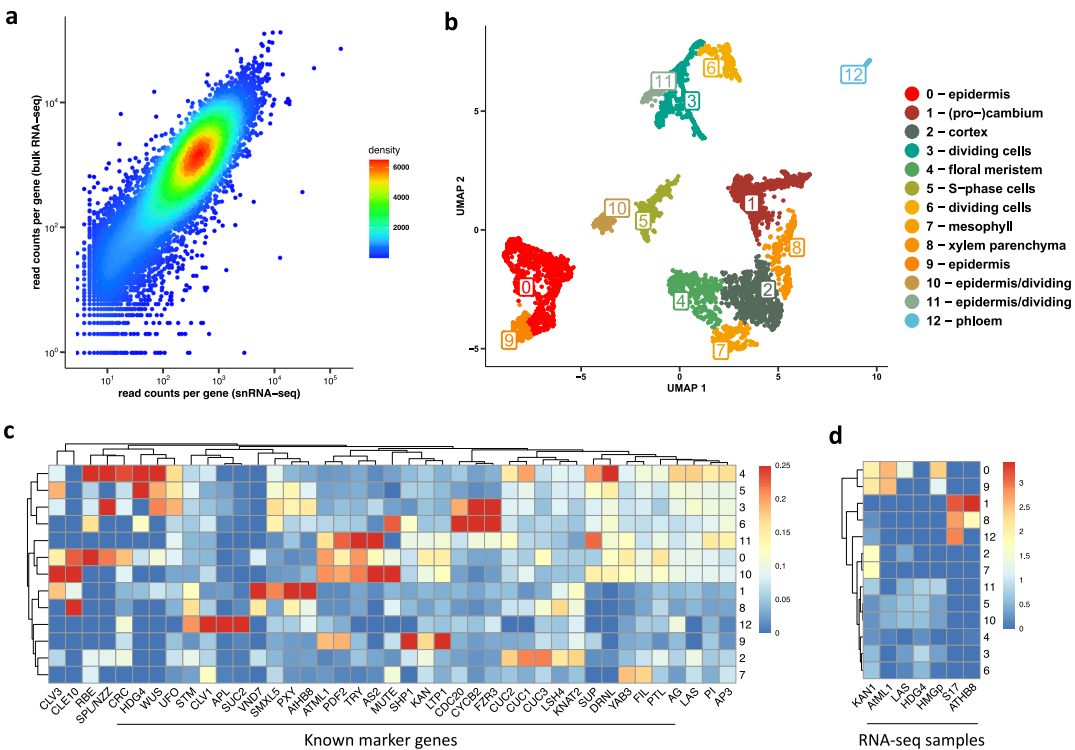 Neumann M, Xu X, Smaczniak C, et al. A 3D gene expression atlas of the floral meristem based on spatial reconstruction of single nucleus RNA sequencing data. Nat Commun. 2022 May 20;13(1):2838.
