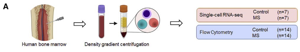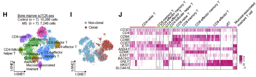 樣本設計:MS患者及健康對照各7例,取骨髓樣本,進行scRNA-seq+scTCR-seq。