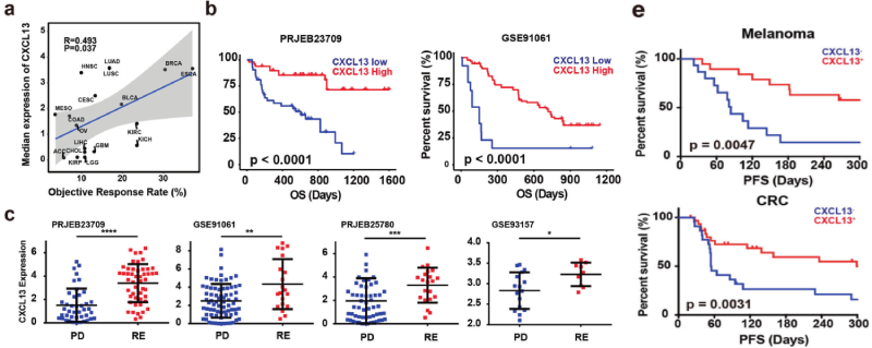 研究內(nèi)容:針對腫瘤特異性抗原(TSA)的個性化免疫療法可以在不損害正常組織的情況下產(chǎn)生有效和安全的抗腫瘤免疫反應,盡管新抗原疫苗已在臨床試驗中顯示出治療效果,但從腫瘤突變中預測新抗原仍然具有挑戰(zhàn)性,宿主抗腫瘤免疫反應選擇并激活識別腫瘤抗原的T細胞;因此用來自患者體內(nèi)這些天然存在的腫瘤抗原特異性T(Tas)細胞的T細胞受體改造的T細胞將靶向患者腫瘤中的TSA。本研究揭示了Tas 細胞的特點是腫瘤富集、腫瘤特異性克隆擴增和新抗原特異性;評估了腫瘤中Tas細胞標記物CXCL13的表達水平可能比來自免疫周期早期步驟的標志物(如TMB)更jing q 地預測對ICB 的反應;并將CD200和ENTPD1分別鑒定為CD4+和CD8+Tas細胞的表面標志物。