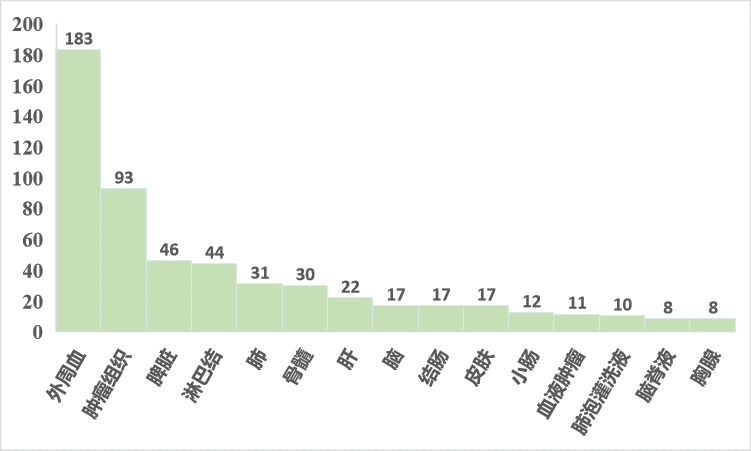 與圖2展示的類似,百邁客實測項目中血液樣本數(shù)量很多,占比超60%;血液樣本相較于組織樣本,無需進行細胞解離,能夠避免細胞解離引起的細胞活性受損、細胞類型丟失等問題;尤其是臨床樣本,往往涉及到組織樣本獲取難度大的問題,患者治療后腫瘤組織取樣更是很多老師的困擾,因此取配對的血液樣本就成了一個合適的替代方案,在臨床監(jiān)測、標志物診斷方面更是具有巨大的優(yōu)勢。