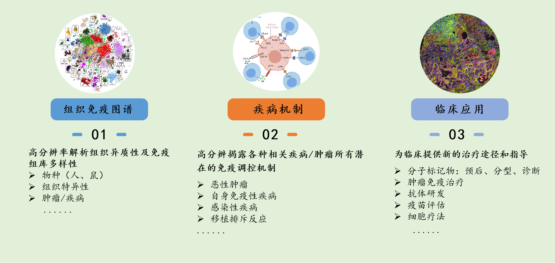 2)利用單細胞免疫組庫技術,理解腫瘤與免疫的相互作用,尋找惡性腫瘤免疫治療的潛在靶點;揭示移植體抗宿主病背后的生物學機制,為免疫調(diào)節(jié)治療提供潛在方向;破譯錯誤導向免疫應答的機制,解析免疫耐受機制與免疫應答動態(tài)調(diào)節(jié)之間的復雜相互作用;