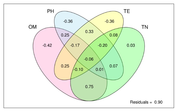 VPA分析(方差分解分析):VPA,全稱Variance Partitioning Analysis,中文稱為方差分解分析,該分析的目的是確定指定的環(huán)境因子對(duì)群落結(jié)構(gòu)變化的解釋比例。通常在CCA/RDA的排序分析方法可以得到所有參與分析的環(huán)境因子對(duì)群落變化的解釋比例。使用R語言vegan包(version:2.3-0),varpart函數(shù)進(jìn)行分析;分析前首先需要對(duì)環(huán)境因子進(jìn)行一個(gè)分類,一般支持2-4類,默認(rèn)使用大于等于2個(gè)環(huán)境因子進(jìn)行此分析。