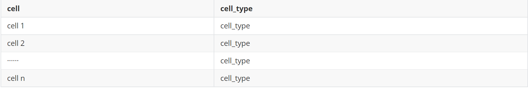 (1)細(xì)胞注釋文件(meta.txt,兩列,分別為細(xì)胞id和細(xì)胞類(lèi)型)