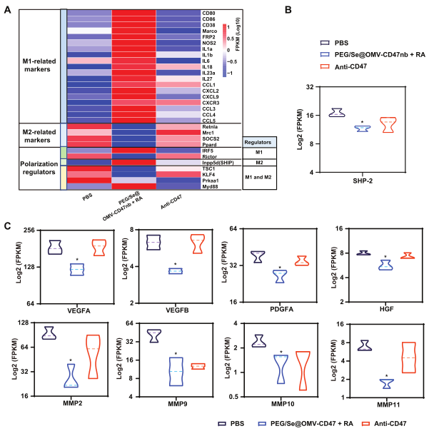 3、RNA-seq分析PEG/Se@OMV-CD47nb治療后瘤內(nèi)巨噬細(xì)胞表達(dá)模式變化