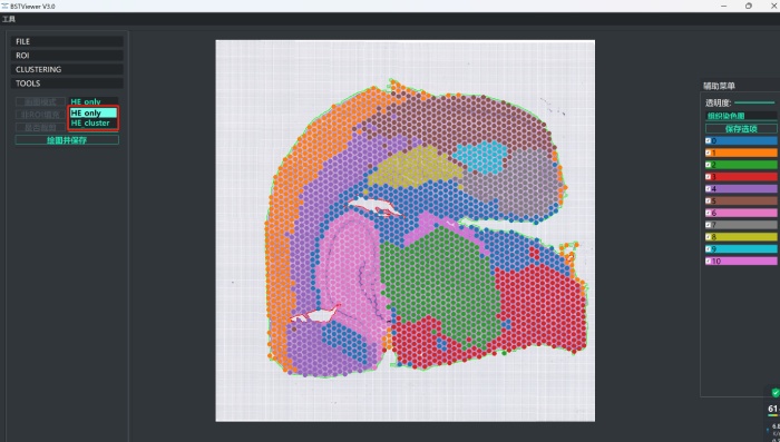 7)聚類圖片可以在TOOLS欄中進(jìn)行保存。點(diǎn)擊圖畫模式可以選擇“僅保存HE”和“HE&Cluster”分別進(jìn)行保存。