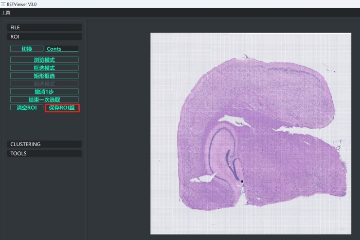 3)導(dǎo)入HE圖片和矩陣文件。導(dǎo)入的HE圖片可以通過鼠標(biāo)左鍵進(jìn)行移動(dòng),滾輪可對圖片進(jìn)行縮放;