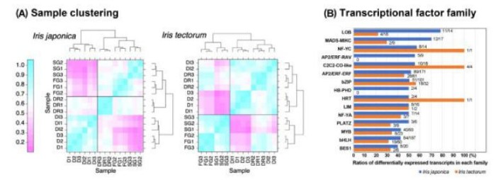 冬季休眠是植物應(yīng)對潛在致命環(huán)境的最關(guān)鍵策略。近幾十年來,由于氣候的變化,在經(jīng)濟上具有重要意義的多年生雙子葉植物中的這一過程得到了廣泛的研究。然而,在不需要冷卻的常綠單子葉植物中,休眠過程至今仍是一個謎。因此,揭示這些單子葉植物越冬休眠的調(diào)控機制,不僅有助于更好地開發(fā)利用植物資源,而且對應(yīng)對全球變暖帶來的低溫不足的挑戰(zhàn)具有重要意義。通過多年物候觀測發(fā)現(xiàn),鳶尾和蝴蝶花越冬休眠過程均僅有生態(tài)休眠,將休眠植株移至適宜條件下能迅速恢復(fù)生長,且在同一栽培地區(qū)二者越冬休眠期存在明顯差異,是研究多年生單子葉植物越冬休眠機理的理想材料。本研究比較了鳶尾(I.tectorum)和蝴蝶花(I.japonica)在關(guān)鍵發(fā)育時間點的休眠過程。這兩種鳶尾都表現(xiàn)出短暫的休眠過程,且持續(xù)時間不同,在溫暖條件下都能很容易地恢復(fù)生長。為了破譯轉(zhuǎn)錄變化,作者對鳶尾進(jìn)行了全長測序,對蝴蝶花進(jìn)行了RNA-seq測序,分別生成參考轉(zhuǎn)錄組,揭示了調(diào)控常綠與落葉類鳶尾越冬休眠的分子機制。