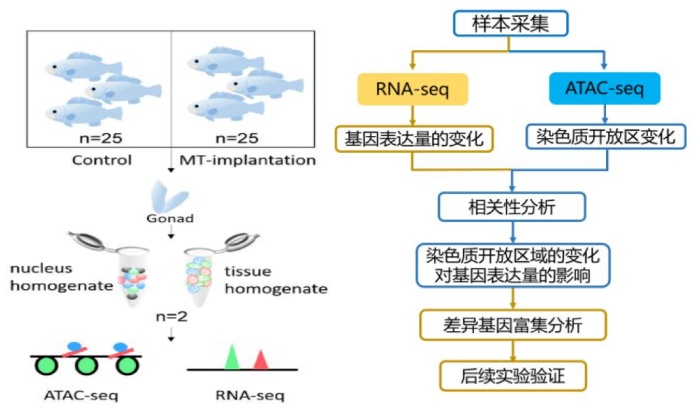 采用ATAC-seq和RNA-seq聯(lián)合分析斜帶石斑魚(雌雄同體)性腺在性逆轉(zhuǎn)過程中的開放染色質(zhì)區(qū)域和TF結(jié)合位點(diǎn),以探究斜帶石斑魚性逆轉(zhuǎn)的分子機(jī)制。