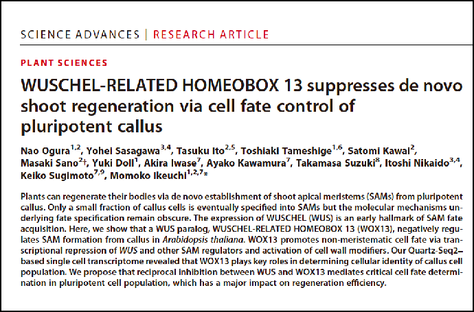 WOX13控制擬南芥愈傷組織細胞命運來抑制新生芽再生