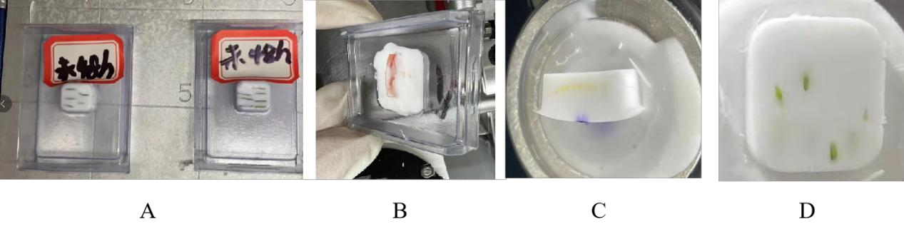 1. 培養(yǎng)基培養(yǎng)樣本:在無(wú)菌超凈臺(tái)中取出組織,去除組織表面附著的培養(yǎng)基,用超純水將組織表面清洗干凈。從活體植株上取下新鮮目標(biāo)區(qū)域組織置于培養(yǎng)皿中,利用4℃預(yù)冷的鑷子和剪刀將目標(biāo)區(qū)域外的組織結(jié)構(gòu)盡量去除,若組織內(nèi)部存在空腔盡可能修剪組織暴露空腔,之后將組織裁剪成<5*6.5mm(10x Genomics)/6.8*6.8mm(百創(chuàng)S3000)的小塊;