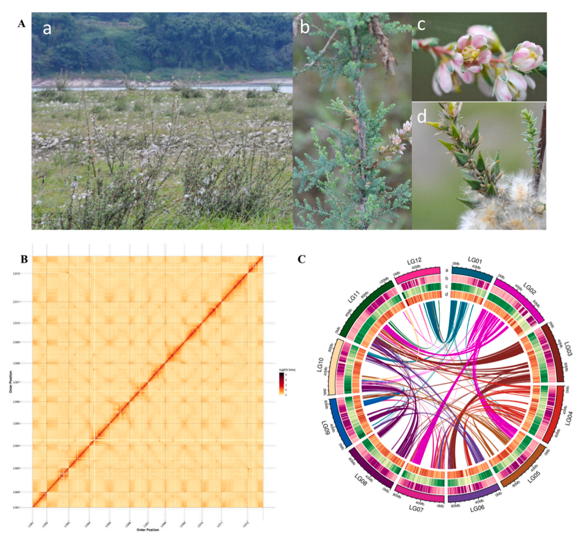 近日,由西南大學(xué)、重慶市林業(yè)科學(xué)研究院、重慶城市管理職業(yè)學(xué)院團(tuán)隊(duì)合作完成的項(xiàng)目成果《?Chromosome-scale?genome?assembly?clarifies?the?mechanism?of?flooding?tolerance?and?evolutionary?history?of?Myricaria?laxiflora》在《科學(xué)引文索引》(SCI)一區(qū)TOP期刊上“Industrial?Crops?&?Products”發(fā)表。該研究報(bào)道了水柏枝屬染色體水平基因組,并從形態(tài)學(xué)、生理學(xué)、比較基因組等多個(gè)角度揭示了疏花水柏枝在淹沒的環(huán)境適應(yīng)性和遺傳機(jī)制,為檉柳科物種種質(zhì)資源的保護(hù)和資源的開發(fā)利用提供了指導(dǎo)。