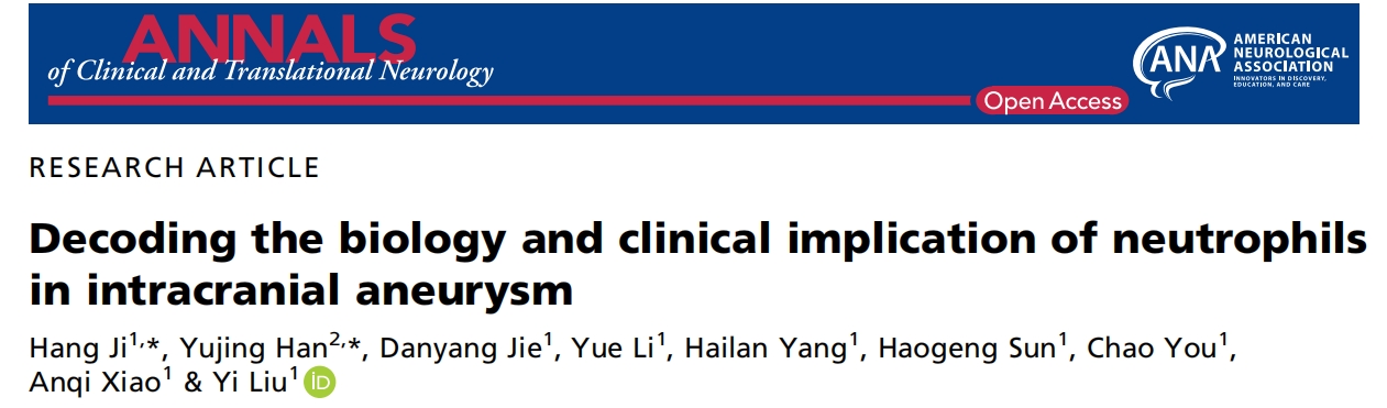 2024年2月,四川大學(xué)華西醫(yī)院在國(guó)際學(xué)術(shù)期刊ANNALS?of Clinical and Translational Neurology發(fā)表一項(xiàng)重要研究成果,題為:Decoding the biology and clinical implication of neutrophils in intracranial aneurysm。使用單細(xì)胞 RNA 測(cè)序?(scRNA-seq)、RNA-seq 和小鼠模型來(lái)剖析在破裂和未破裂的顱內(nèi)動(dòng)脈瘤中性粒細(xì)胞的功能和臨床意義。