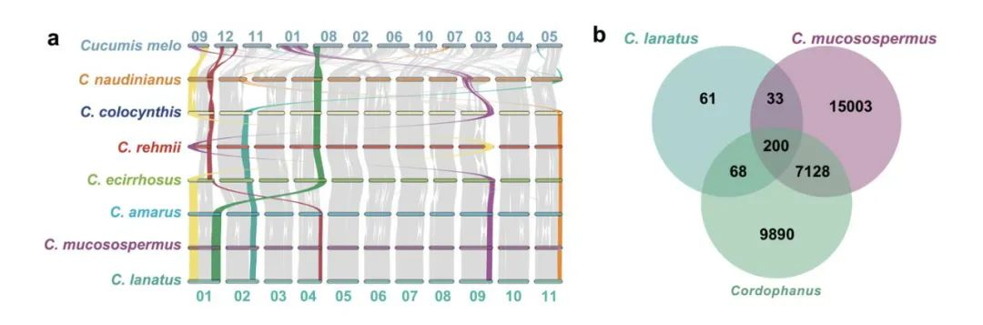 圖1-西瓜屬7個種的28份代表性材料的多樣性與泛基因組圖譜