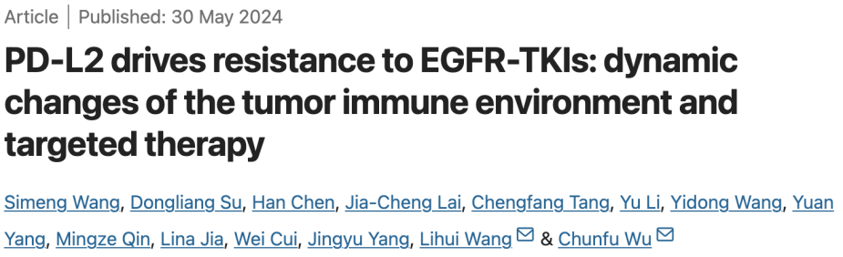 2024年5月,沈陽(yáng)藥科大學(xué)在國(guó)際學(xué)術(shù)期刊cell death & differentiation 發(fā)表一項(xiàng)重要研究成果,題為:PD-L2 drives resistance to EGFR-TKIs: dynamic changes of the tumor immune environment and targeted therapy。使用單細(xì)胞 RNA 測(cè)序 (scRNA-seq)、TUNEL、酶聯(lián)免疫吸附、流式細(xì)胞術(shù)、WB、CETSA、CCK-8來(lái)剖析腫瘤的耐藥機(jī)制。