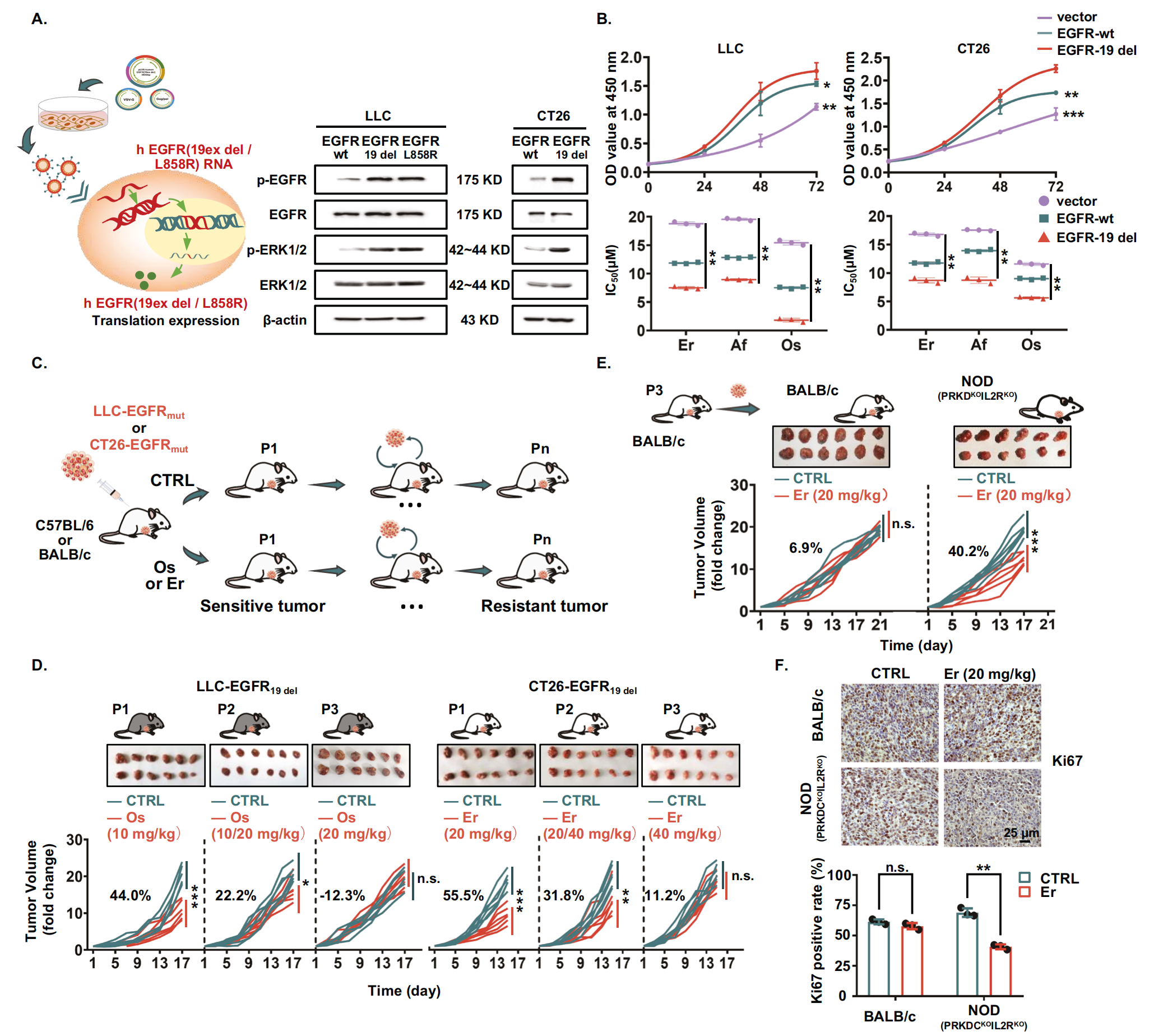 使用攜帶 EGFR 突變的小鼠細(xì)胞系建立了異位異種移植腫瘤模型,并評(píng)估了對(duì)不同代 EGFR-TKI 的反應(yīng),揭示腫瘤耐藥機(jī)制。