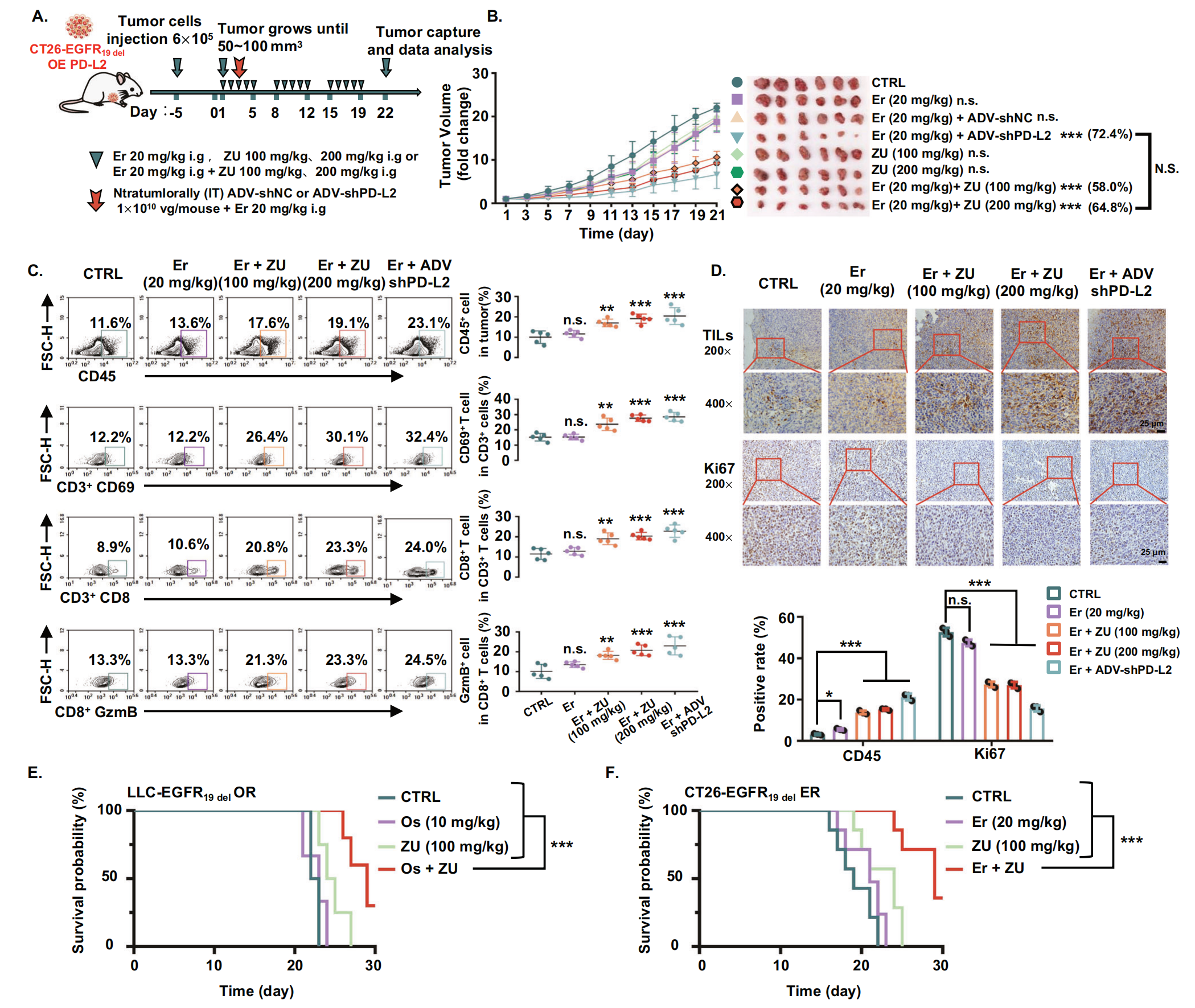 • ZU 改善抑制性腫瘤免疫環(huán)境,在體內(nèi)逆轉(zhuǎn) EGFR-TKIs 耐藥