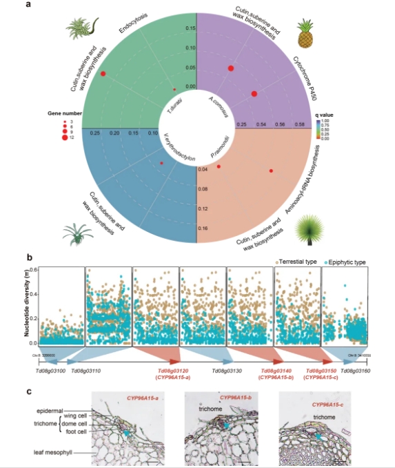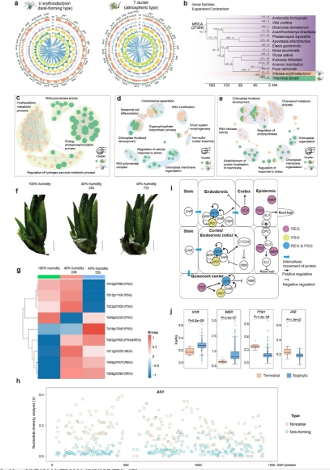 圖3-比較基因組分析揭示空氣鳳梨耐旱、根退化和蓄水槽形成的遺傳基礎(chǔ)