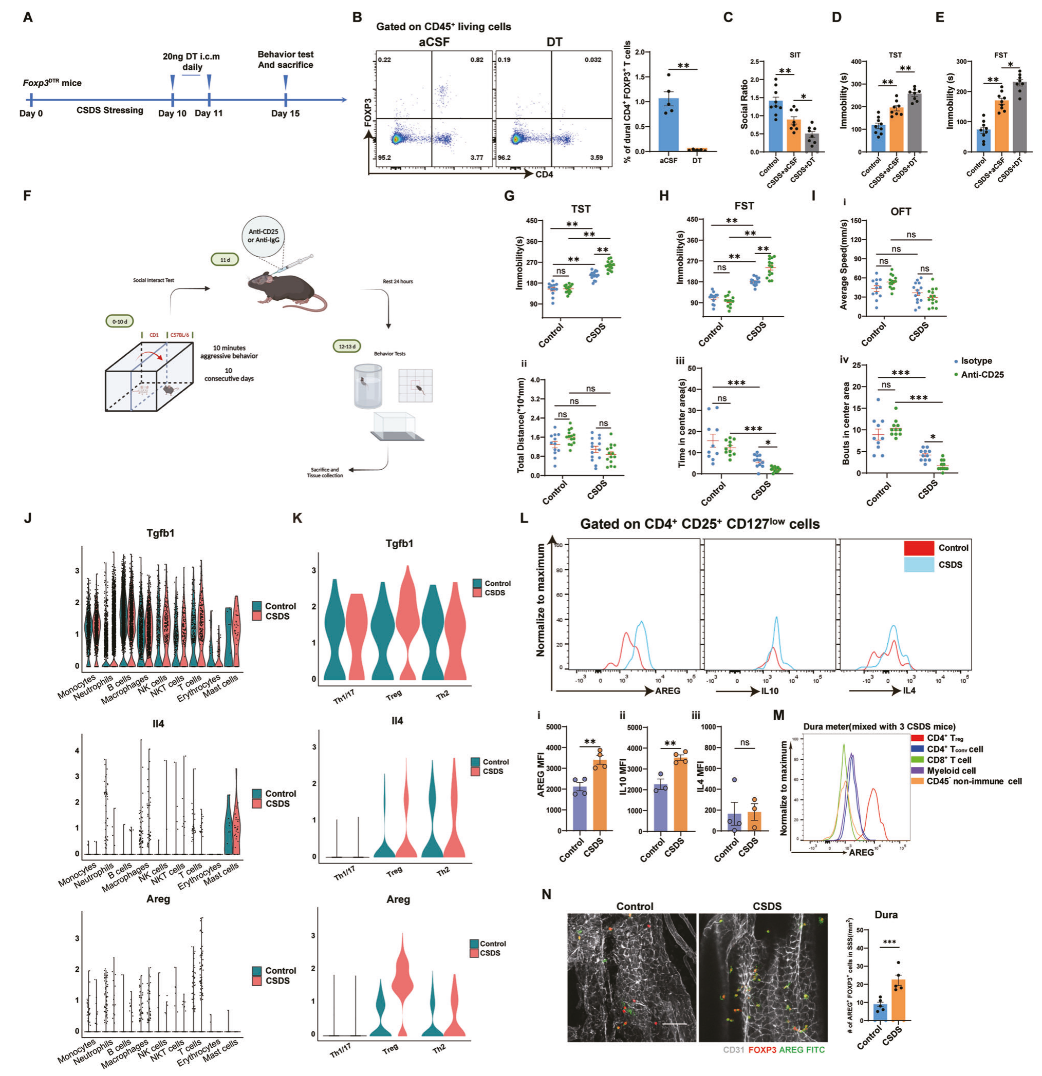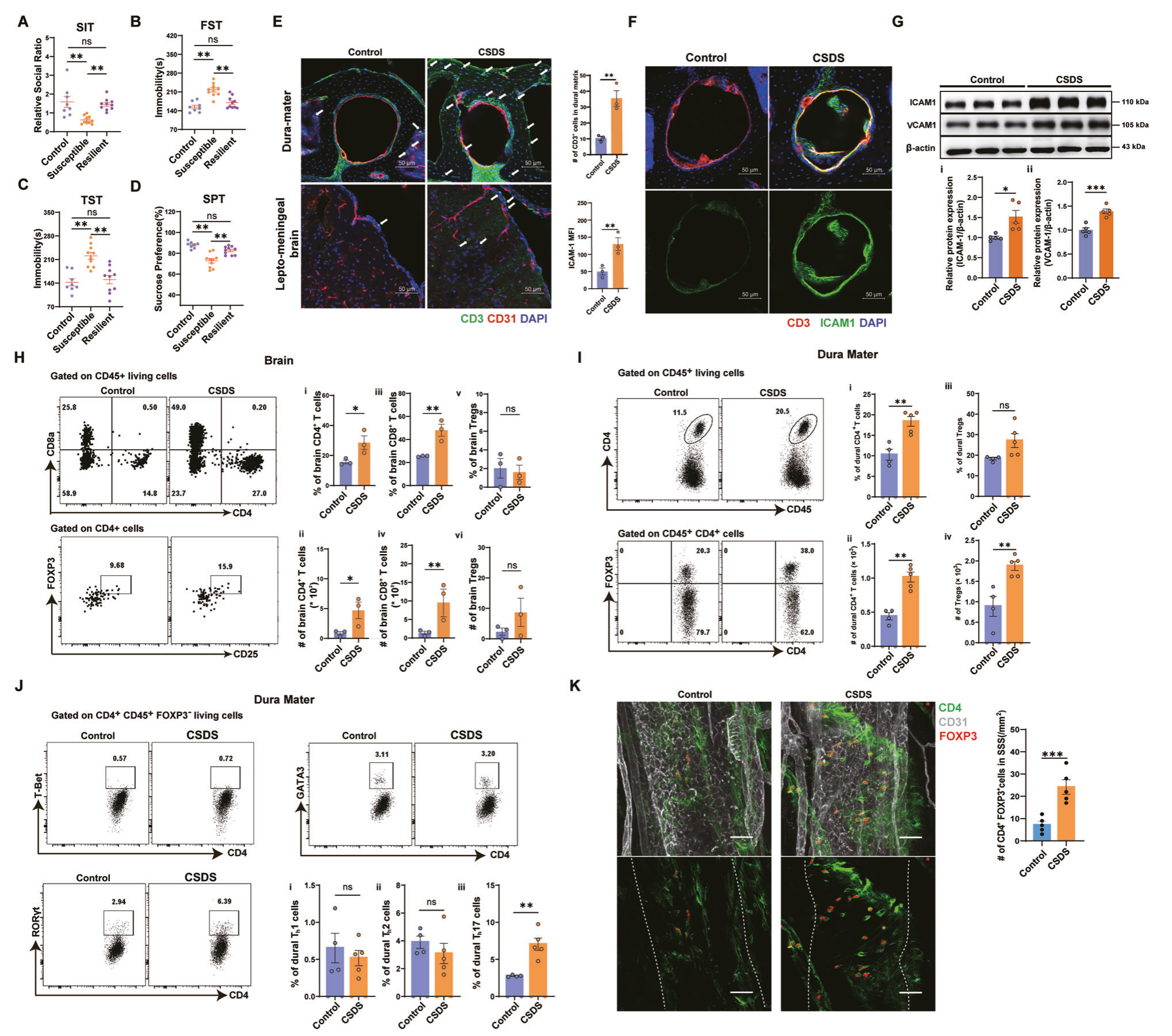 圖1-CSDS刺激顯著誘導(dǎo)了小鼠硬腦膜中Treg的浸潤(rùn)