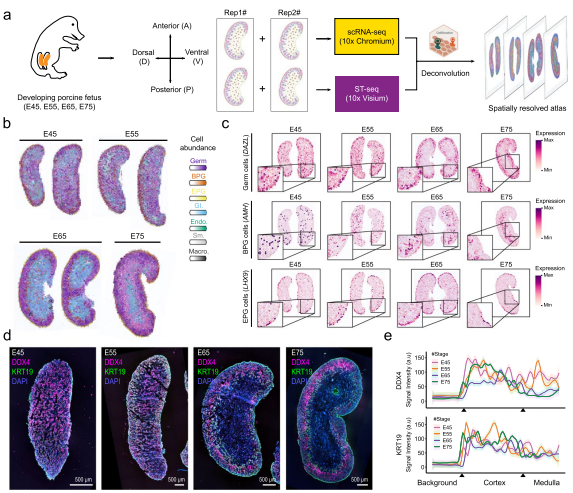 空間轉(zhuǎn)錄組:豬E45、E55、E65、E75胚胎卵巢,10x Visium;E65胚胎卵巢,BMKMANU S1000
