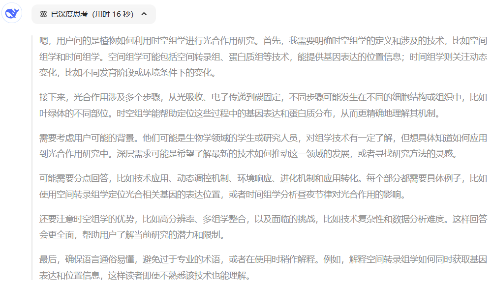 于是,我問DeepSeek:植物如何利用時空組學進行光合作用研究?