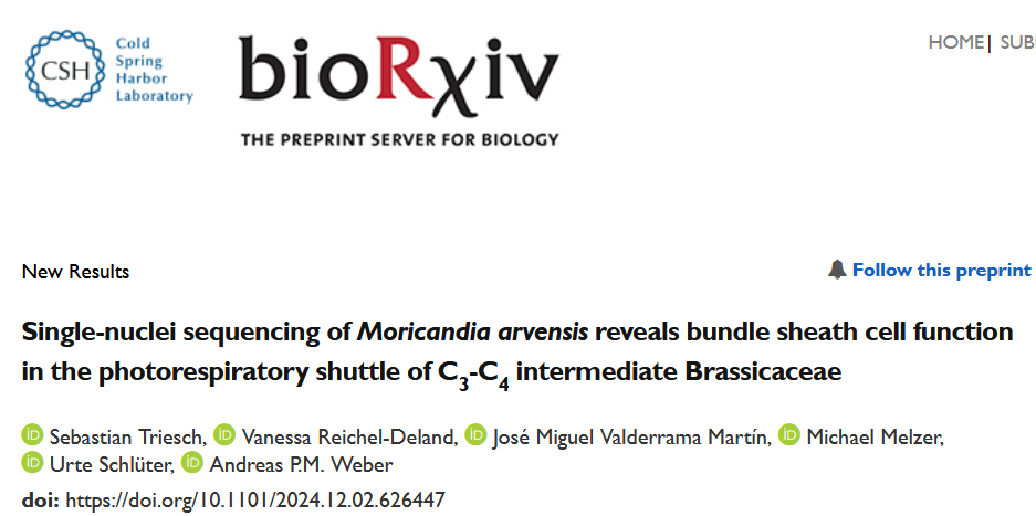 [7] Triesch S, Reichel-Deland V, Valderrama Martín JM, et al. Single-nuclei sequencing of Moricandia arvensis reveals bundle sheath cell function in the photorespiratory shuttle of ?C3-C4 intermediate Brassicaceae[EB/OL]. bioRxiv, 2024. doi: https://doi.org/10.1101/2024.12.02.626447.
