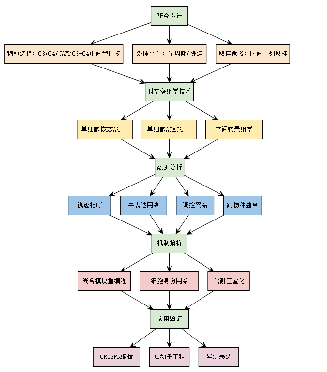 根據(jù)上述文獻,可以總結(jié)出應(yīng)用時空組學解析植物光合作用機制常用思路的技術(shù)路線圖。