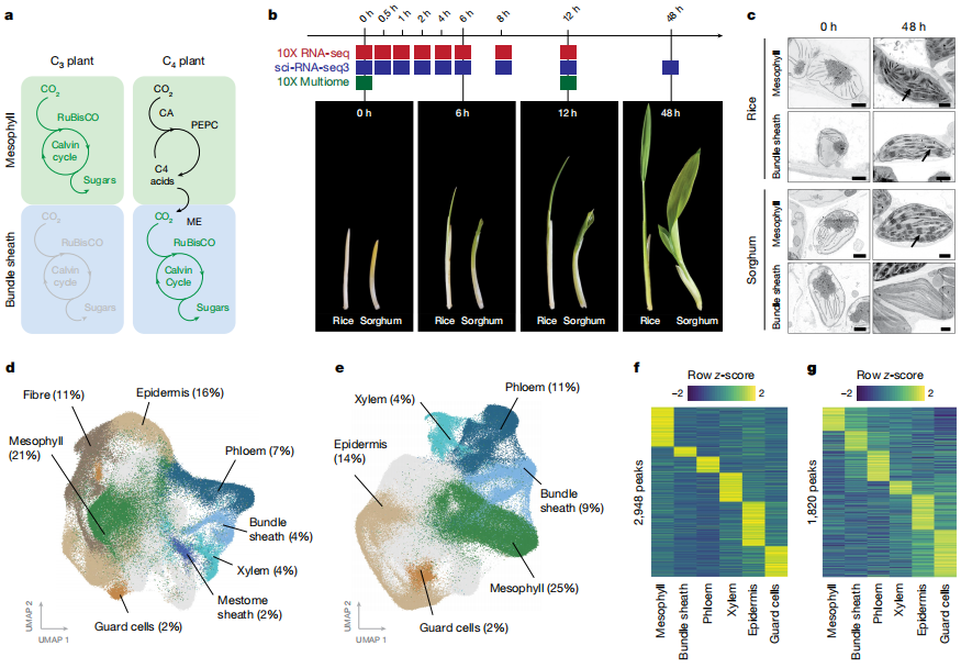 圖2-水稻和高粱幼苗去黃化過程中單細胞核的基因表達和染色質(zhì)可及性