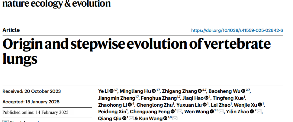 9. Li, Y., et al. Origin and stepwise evolution of vertebrate lungs. Nat Ecol Evol (2025).
