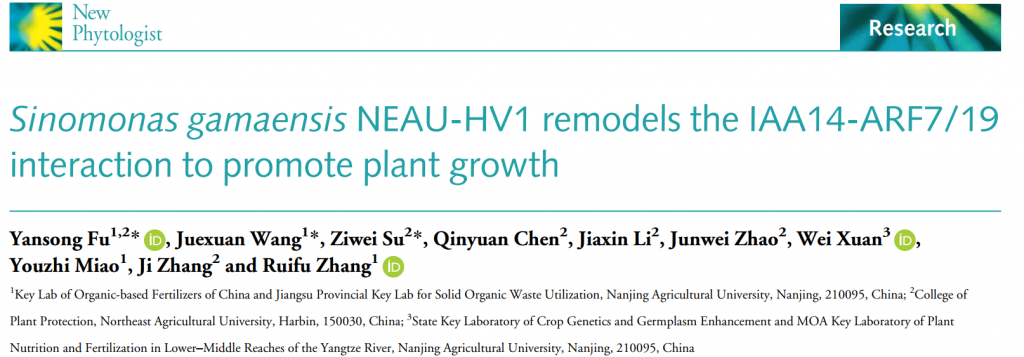 英文標(biāo)題:Sinomonas gamaensis NEAU-HV1 remodels the IAA14-ARF7/19 interaction to promote plant growth